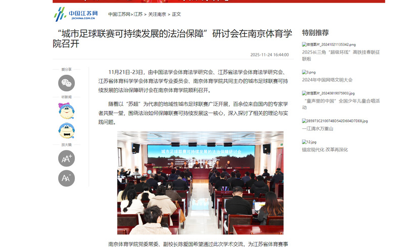 【中国江苏网】“城市足球联赛可持续发展的法治保障”研讨会在南京体育学院召开