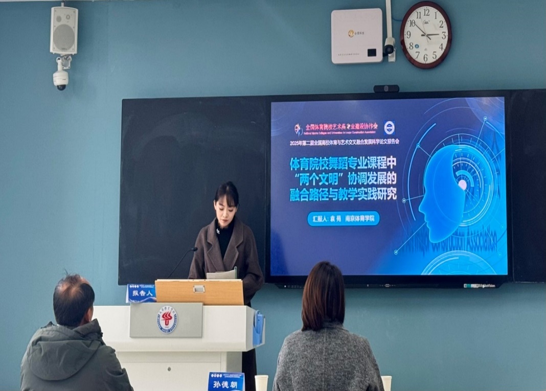 本届体育与艺术交叉融合发展科学论文报告会包括了北京体育大学、上海体育大学等二十余所院校、三百多位同行专家参与其中。我院师生多篇论文入围,其中青年教师袁苑作专题报告,获得广泛关注与好评。系列活动凝聚共识,进一步驱动我校艺术学科面对“十五五”新机遇、新挑战,立足江苏、放眼全国,探寻更为多元有效发展举措,开创南体“体艺”交融产学研新境界,为江苏体艺融合教育发展及全国体育院校艺术学创新发展贡献力量。