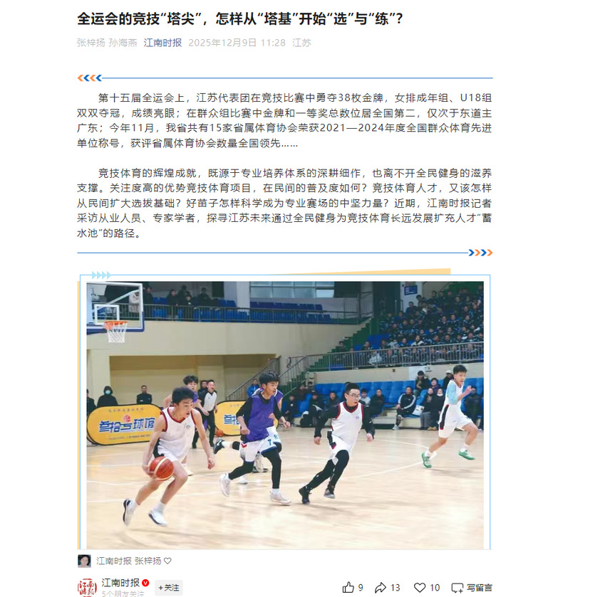 【江南时报网】全运会后,江苏竞技体育如何“伯乐识人” 相关报道