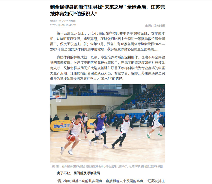 【江南时报】到全民健身的海洋里寻找“未来之星” 全运会后,江苏竞技体育如何“伯乐识人”
