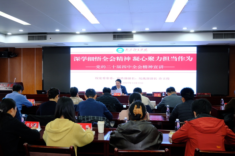 本次宣讲由学校党委常委、宣传部部长、统战部部长许立俊作专题宣讲,围绕党的二十届四中全会的重大意义、精神实质和核心要义展开系统阐释,重点解读全会对“十五五”时期经济社会发展的战略部署、对文化强国、教育强国建设的关键部署,以及全面从严治党、推进中国式现代化的实践要求等内容,为全校统一战线成员统一思想、凝聚共识提供了精准指导。
