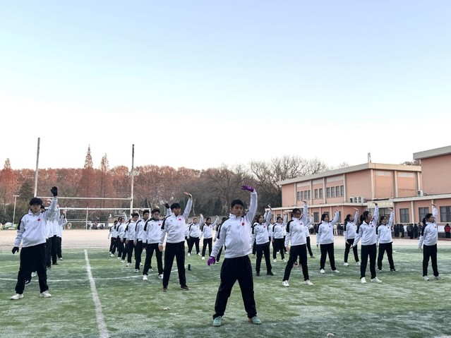 为促进学生德智体美劳全面发展,鼓励学生积极锻炼身体、振奋精神风貌,12月15日清晨,学工处组织的2025年大学生早操评比活动在灵谷寺校区与仙林校区同步启动。校党委副书记、校长吴兵成,党委常委、副校长鲍勤分别赴两校区进行现场指导,学工处、教务处、团委相关负责人组成评审团参与现场打分,各二级学院主要负责人、党总支副书记、新生辅导员及班主任齐聚操场,共同组织并见证这一充满活力的时刻。