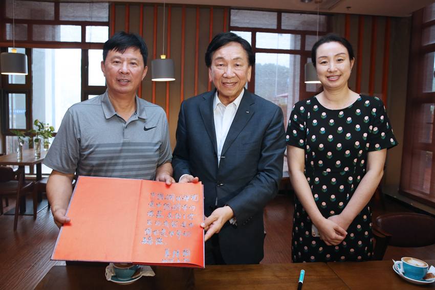在中国网球学院,中国网球学院院长蒋宏伟向吴经国夫妇、吕庆将夫妇一行介绍了网院有关情况。吴经国还为中国网球学院题词。
