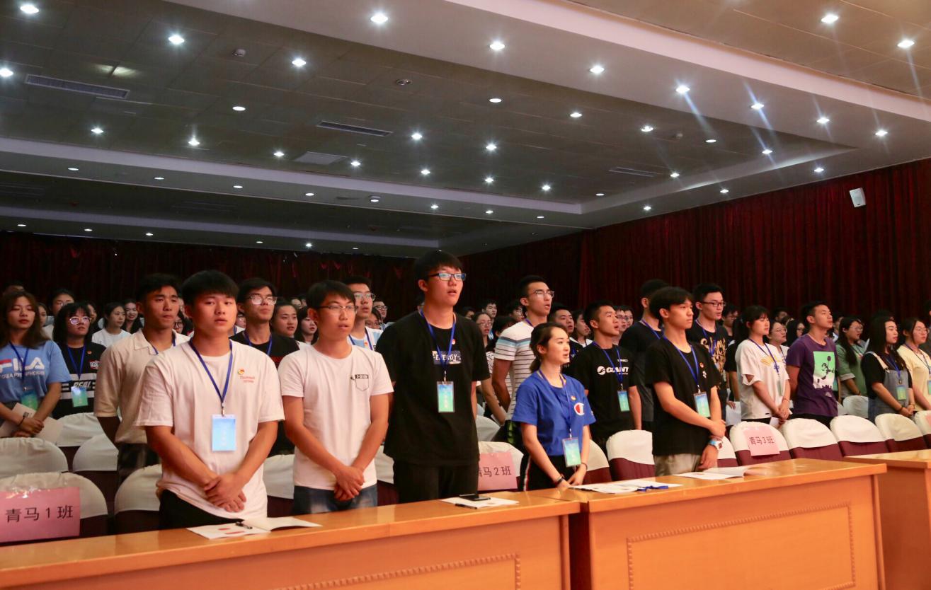 在嘹亮的国歌声中,开班仪式拉开序幕。青马班学员代表郑涵冰发言。随后参会嘉宾分别为青马班学员代表授旗。