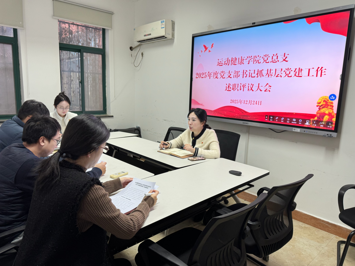 为进一步夯实基层党支部标准化规范化建设,压紧压实党支部书记抓党建工作第一责任人职责,不断提高基层党建工作质效,以高质量党建引领学院高质量发展,12月24日,运动健康学院召开2025年度党支部书记抓党建工作述职评议大会。学院党总支委员、全体党支部书记参加此次会议,会议由学院党总支书记阚妮妮主持。