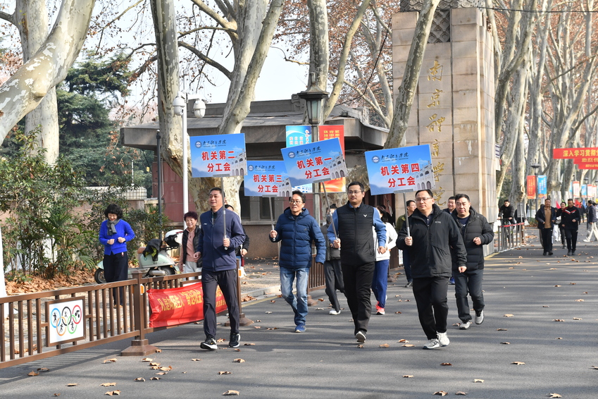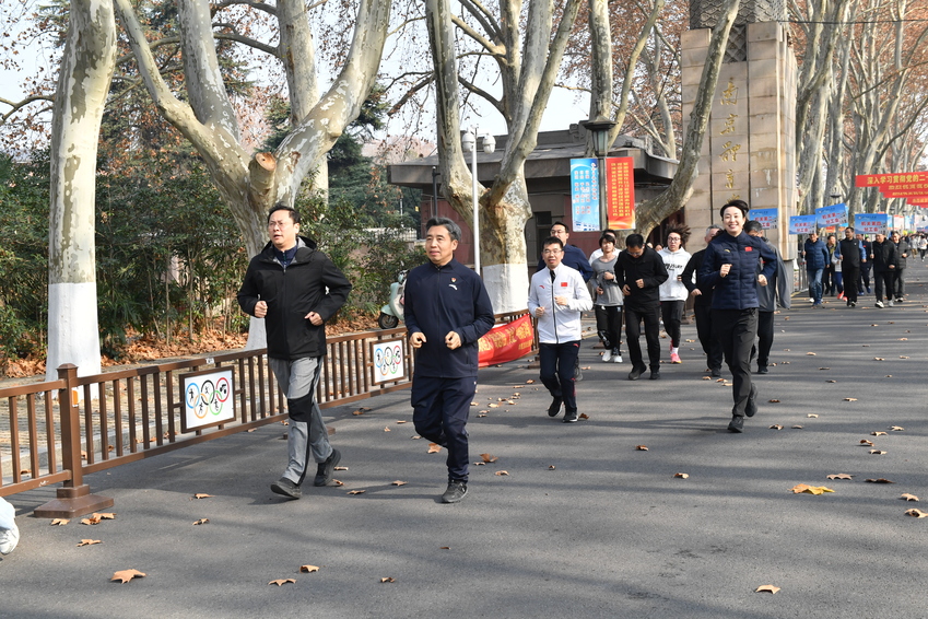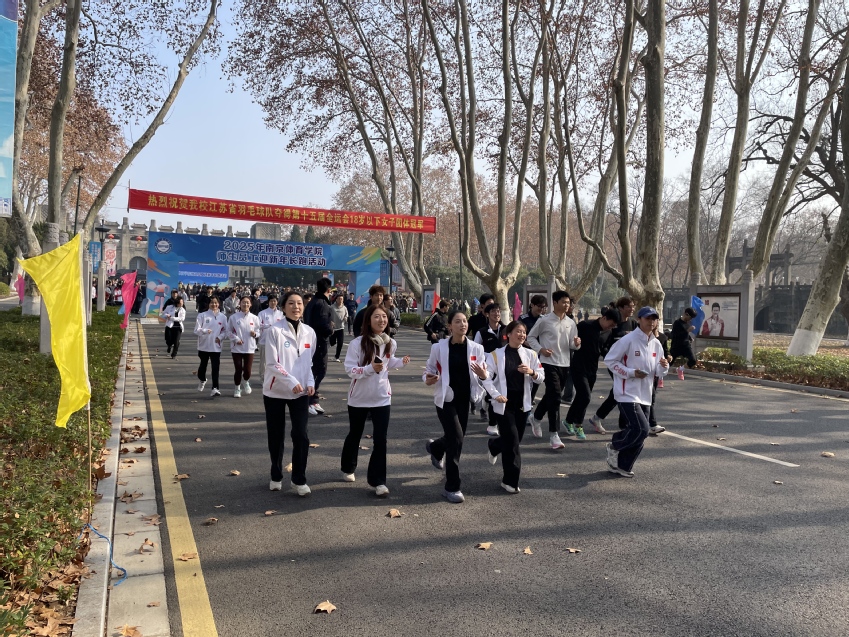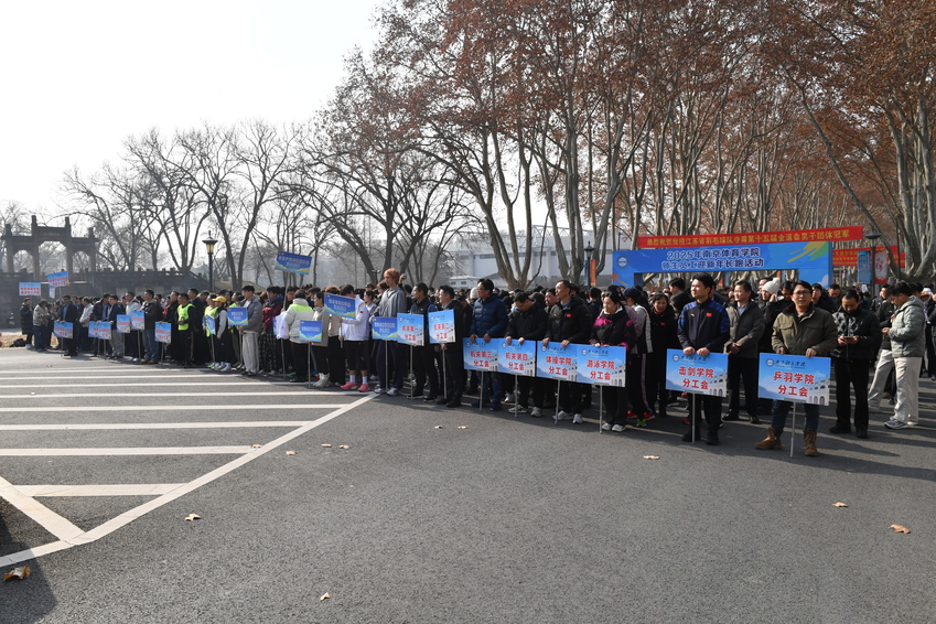 刘红明为长跑活动鸣笛示跑。随着一声清脆的笛声响起,2025年南京体育学院师生员工迎新年长跑活动正式开始。来自全校17个分工会的教职工和学生代表迈着矫健的步伐,踏上奥运冠军大道,行进在风景优美的灵谷寺路上,在享受运动快乐的同时,也领略了东郊的独特冬景。活动中,队伍整齐划一、精神抖擞、活力迸发,充分展现了新时代南体师生开拓进取的时代风采和奋发向上的精神风貌。