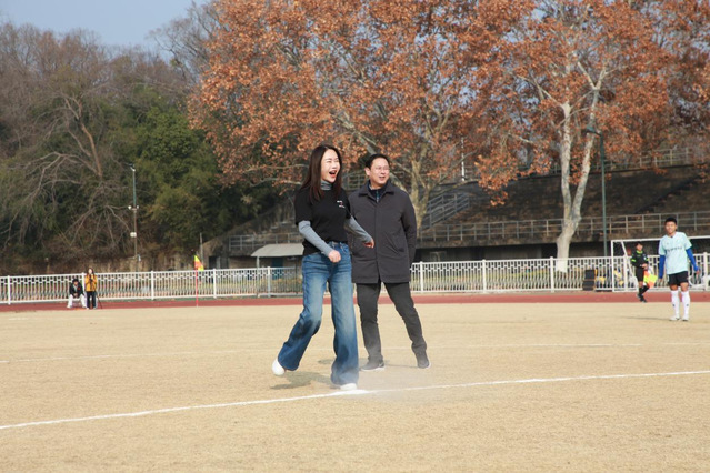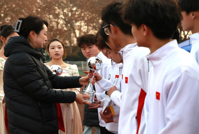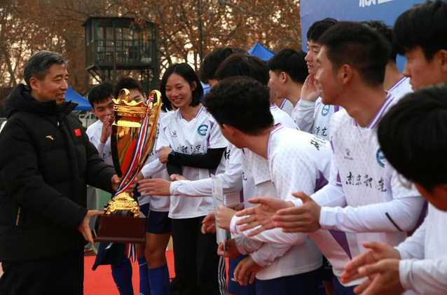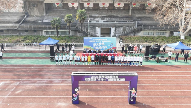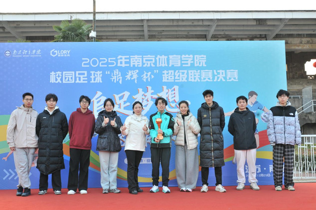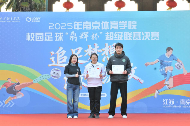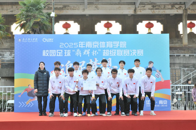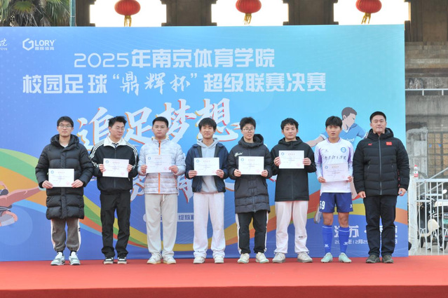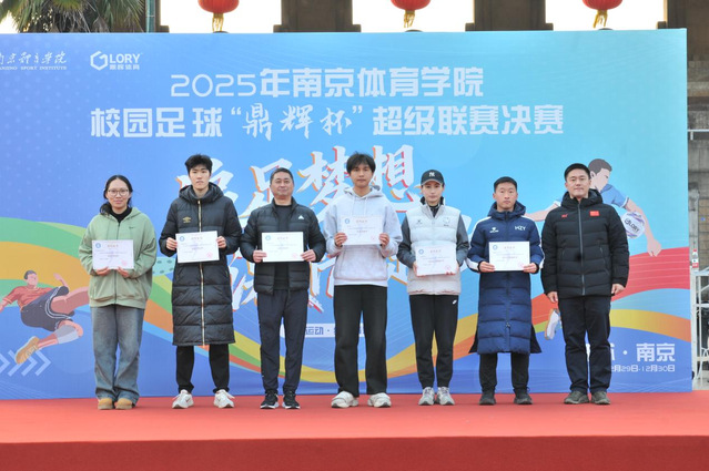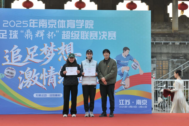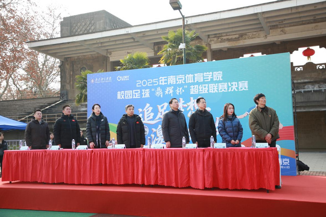 12月30日下午,2025年南京体育学院校园足球“鼎辉杯”超级联赛专业组决赛暨颁奖仪式在中央体育场盛大举行。校党委书记刘红明,校党委副书记、校长吴兵成,校党委常委、副校长鲍勤、王猛,南京市教育局校园足球办公室主任杨洲洲,南京鼎辉体育科技发展有限公司董事长丁若妍莅临现场。全体参赛队员、裁判员、志愿者及观赛师生近600人共同见证这场绿茵盛宴的收官时刻。