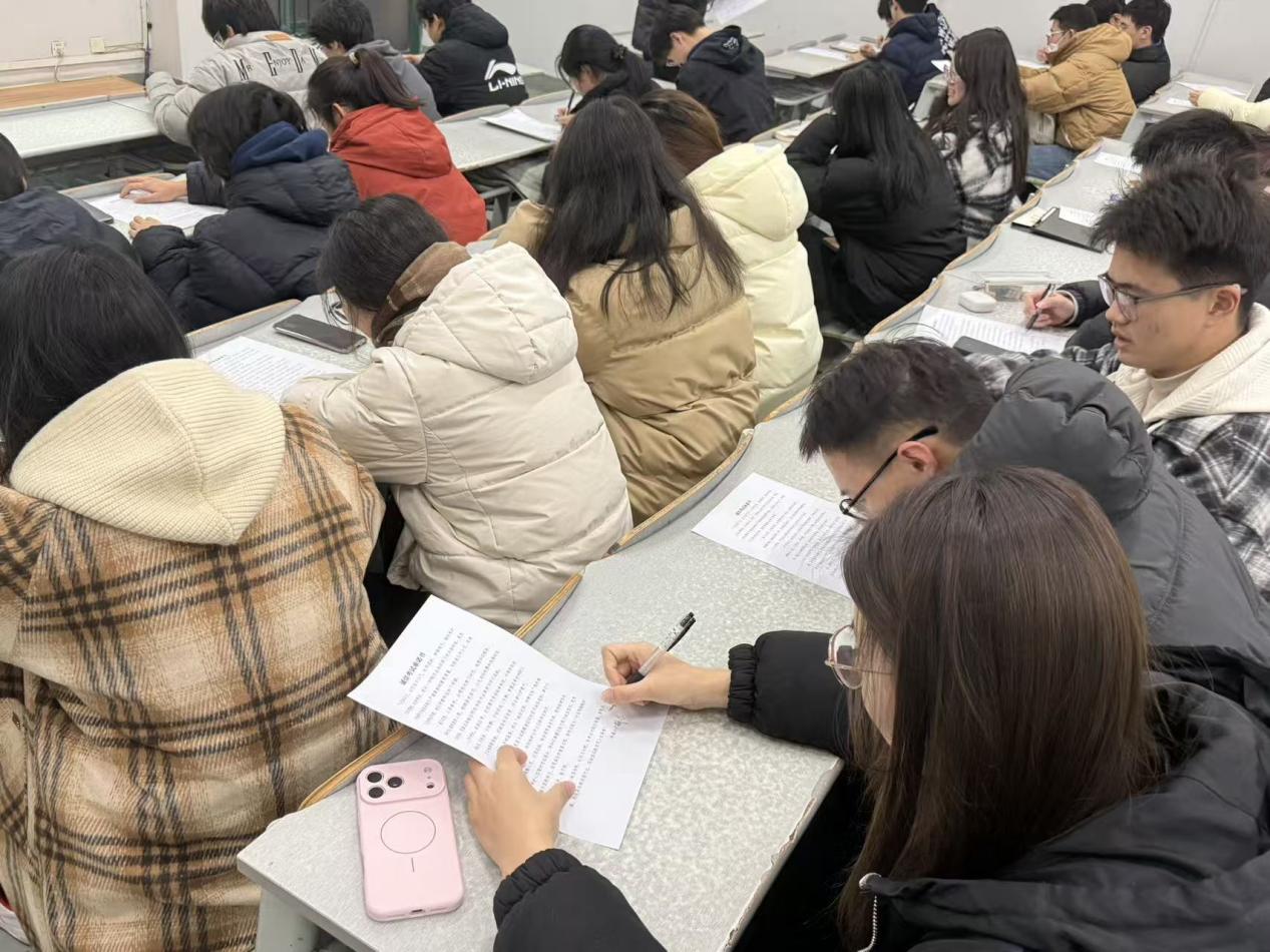 为进一步拓宽教育覆盖面、增强活动影响力,学院依托官方微信公众号平台发布《诚信考试倡议书》,向全体同学发出郑重号召:坚守学术道德底线,端正考试态度,以扎实学识争取优异成绩,以诚信品格彰显青春风采。与此同时,各班级在主题班会现场组织全体同学签署《诚信考试承诺书》。落笔为诺,签的是姓名,更是责任与担当。此次签名仪式不仅是一次庄重的纪律教育,更是一场深刻的自我警醒,有效强化了同学们“诚信应考第一责任人”的主体意识,助力大家将外在的制度约束转化为内在的自觉遵循,为构建风清气正的校园考试环境筑牢思想根基。