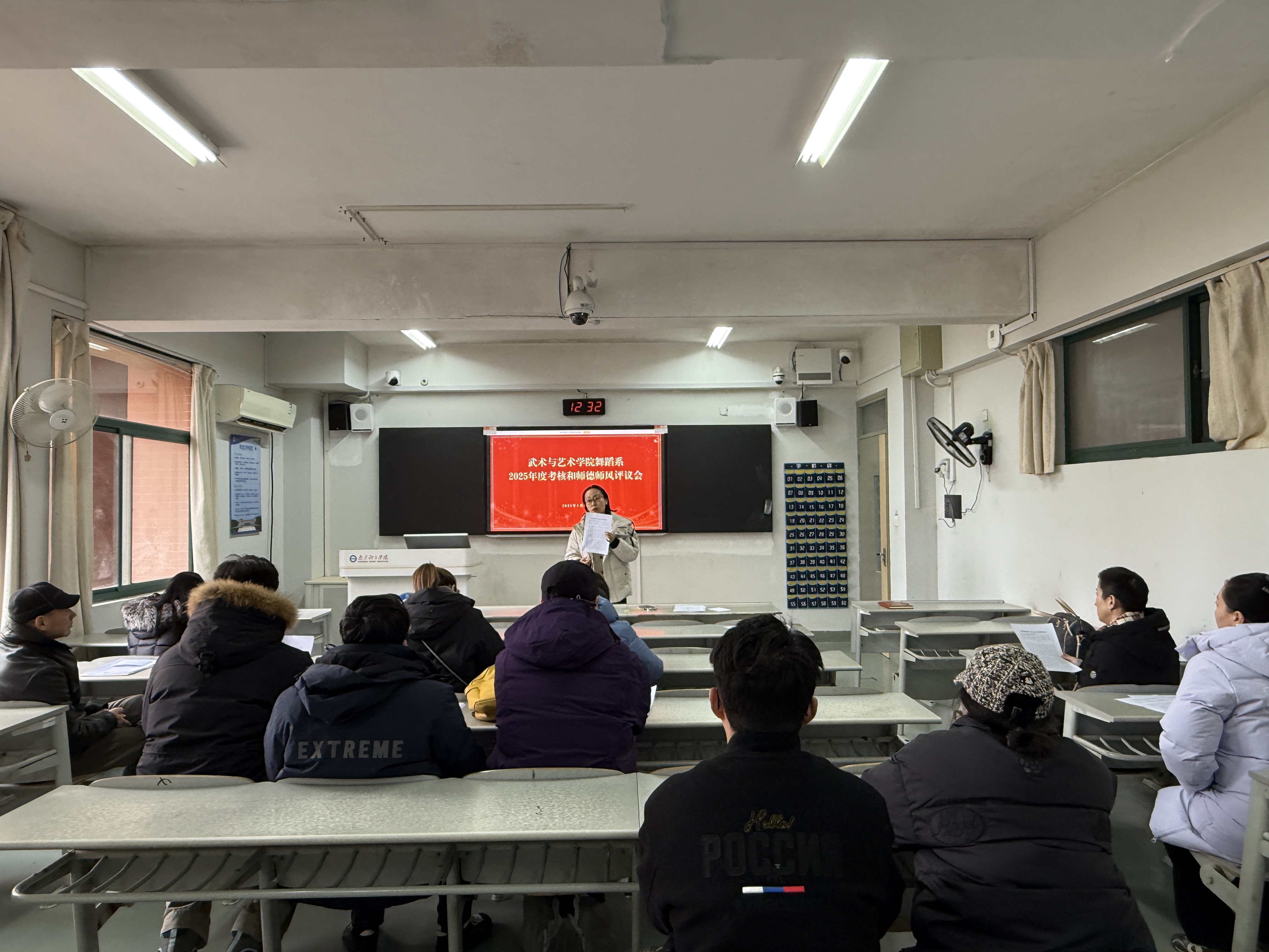 为深入落实立德树人根本任务,健全教职工思想政治与师德师风考核评价机制,全面提升教职工思想政治素质和职业道德水平,武术与艺术学院于2026年1月5日至7日顺利完成2025年度教职工考核工作。
