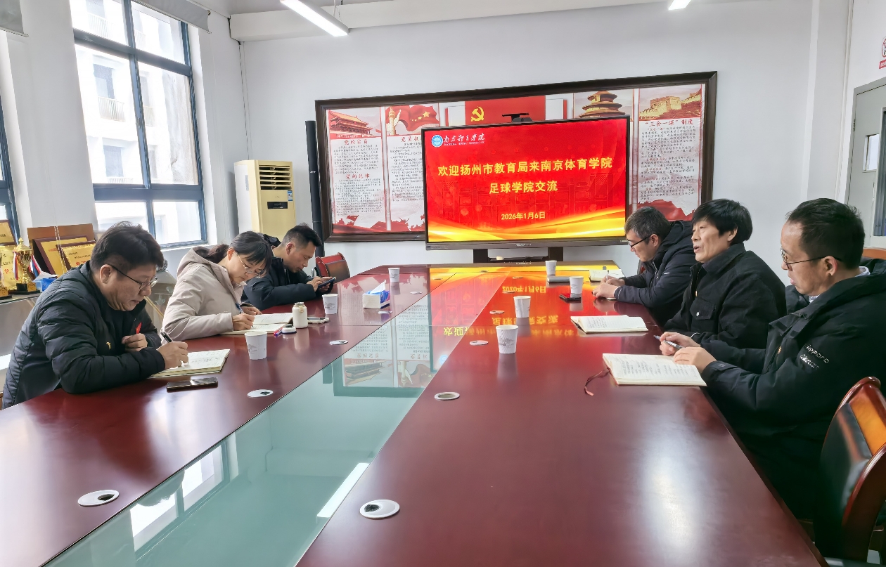 1月6日,扬州市教育局代表团一行莅临南京体院运动训练学院,就校园足球深度合作事宜进行研讨,并初步达成合作意向。运动训练学院、足球学院院长赵琦、副院长赵西堂、足球系主任侯学华及相关领域教师出席会议,双方围绕扬州校园足球的普及推广、质量提升与可持续发展展开深入交流。