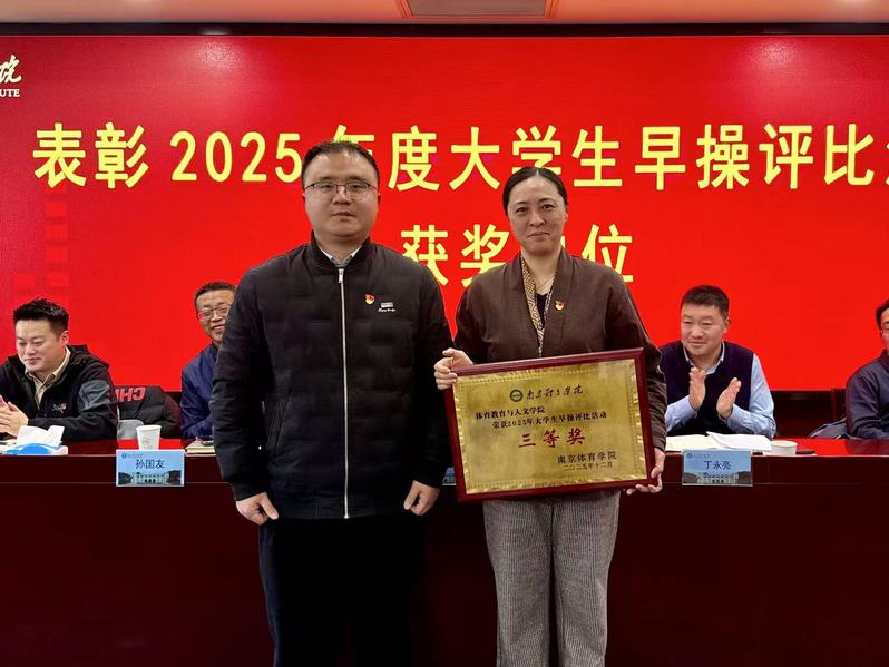 学工处副处长万冲凯为2025年大学生早操评比活动“三等奖”体育教育与人文学院颁奖
