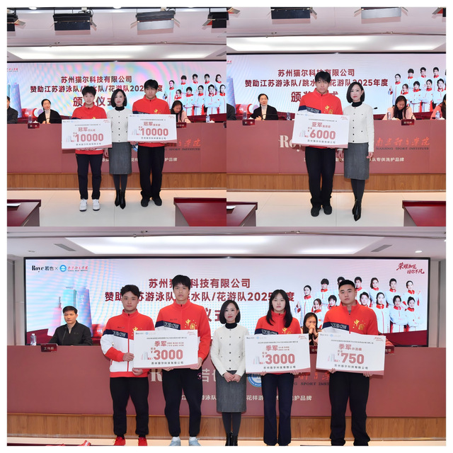 1月24日上午,苏州猫尔科技有限公司赞助江苏游泳队、跳水队、花游队2025年度颁奖仪式在南京体育学院隆重举行。