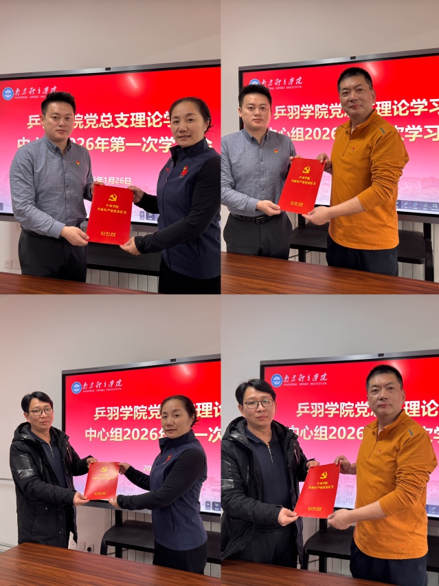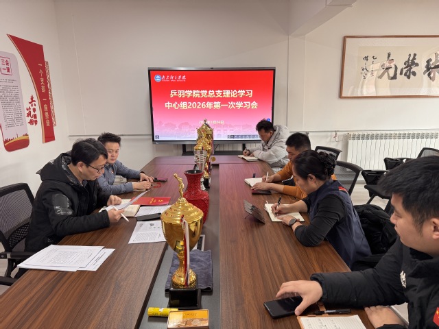 1月26日下午,乒羽学院党总支理论学习中心组(扩大)2026年第一次集中学习会在学院会议室召开。会议由党总支副书记吴晓明主持,党总支理论学习中心组全体成员及其他管理干部参加学习。