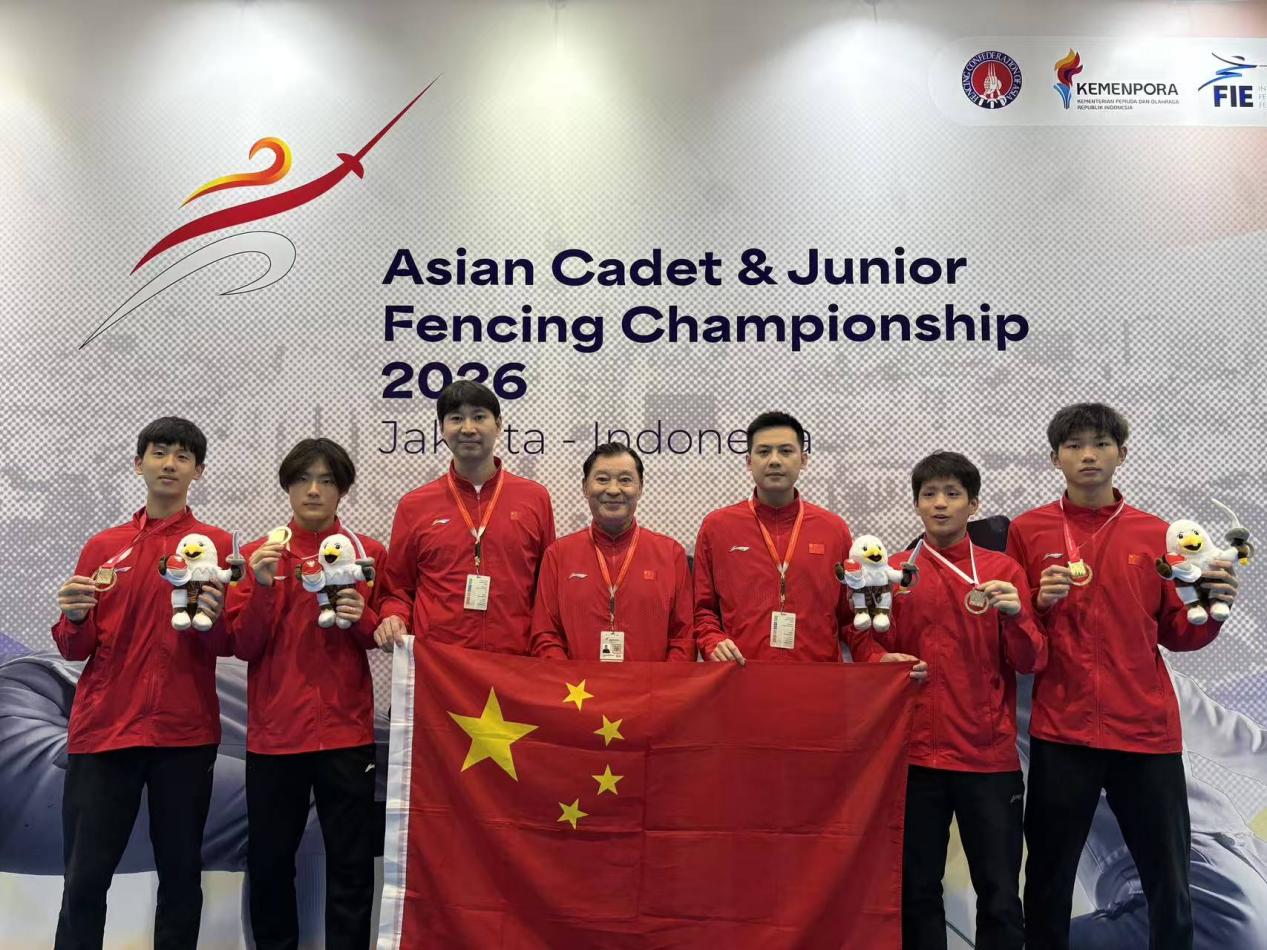 2月26日,在印度尼西亚雅加达举行的2026年亚洲青少年击剑锦标赛青年组团体赛中,击剑学院运动员邹天一、李欣遥分别获得男子花剑、女子重剑团体冠军。