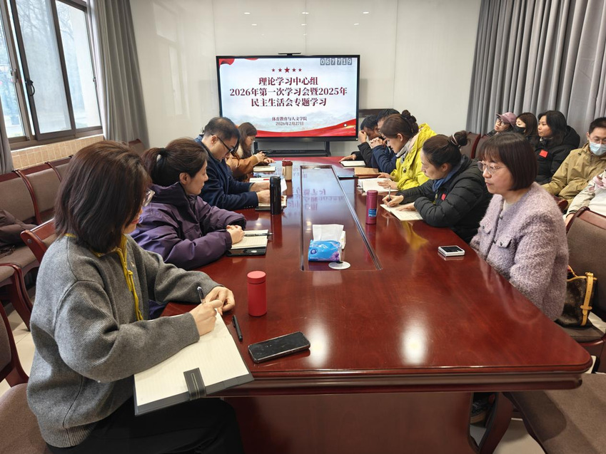 2月27日,体育教育与人文学院党总支召开理论学习中心组2026年第一次学习会暨2025年民主生活会专题学习会,深入学习贯彻习近平新时代中国特色社会主义思想,巩固拓展主题教育成果,认真学习南京体育学院党委理论学习中心组2026年第二次学习会暨2025年度民主生活会专题学习会精神。会议由党总支书记卢奎主持,学院党总支理论学习中心组成员、系部副主任、各党支部委员及学院行政人员参加会议。