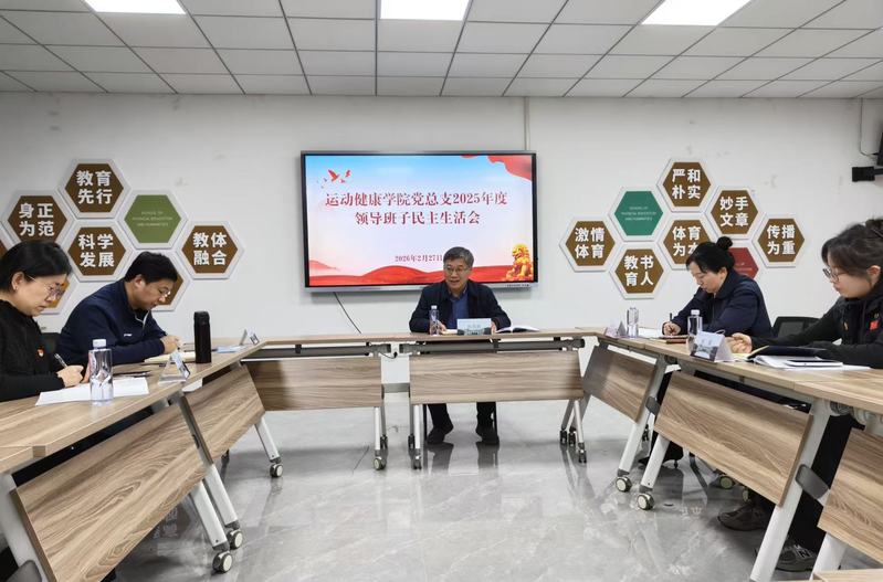 2月27日下午,运动健康学院党总支在教学办公楼220会议室召开2025年度领导班子民主生活会。校党委常委、副校长陈爱国到会指导,会议由学院党总支书记阚妮妮主持,学院领导班子成员参加会议。