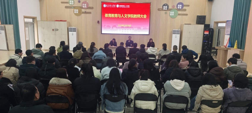 春意渐浓,万象更新。2月28日,体育教育与人文学院召开新学期全体教师大会,传达学校有关会议精神,部署新学期开学各项工作,凝聚奋进力量,擘画发展新篇。学院党总支书记卢奎、副书记喻菊、副院长康晓磊出席会议,全体教职工参加会议。卢奎主持会议。