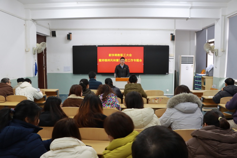为全面部署新学期各项工作,凝聚全体教职工奋进力量,3月2日上午,附属学校在三楼多媒体教室召开教职工大会暨师德师风及意识形态专题会。附属学校党总支书记、校长宋虎,副书记、副校长杨勇及全体教职工参加会议。会议由杨勇主持。