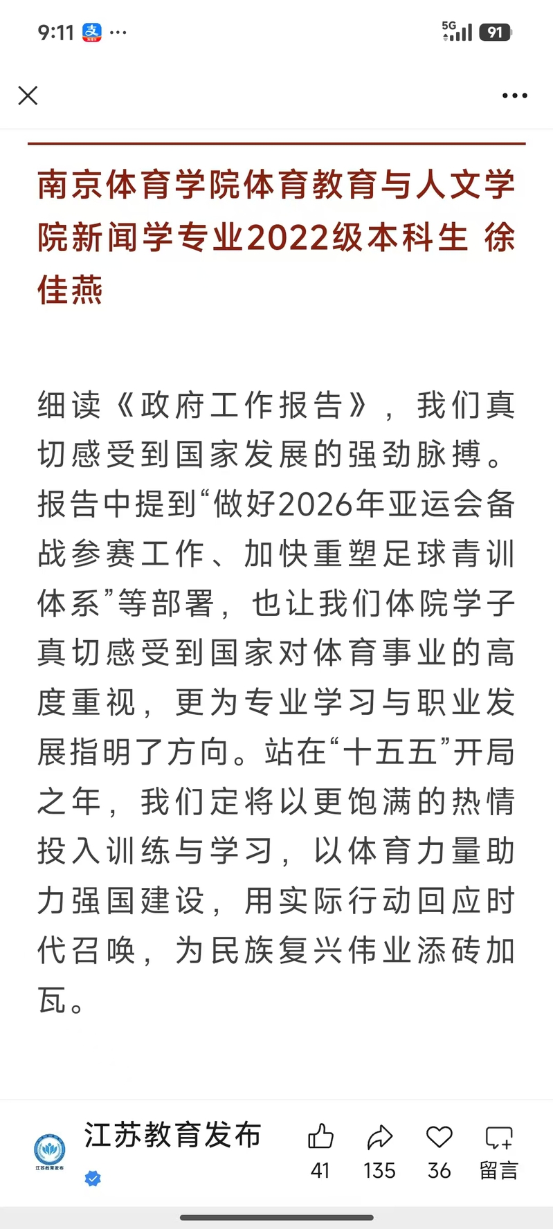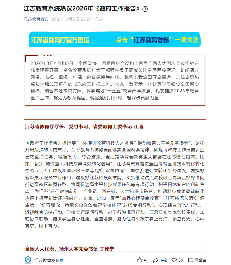 【江苏教育发布】江苏教育系统热议2026年《政府工作报告》①