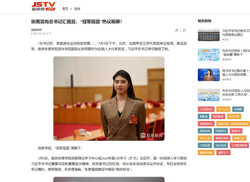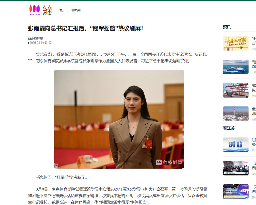 【我苏客户端】张雨霏向总书记汇报后,“冠军摇篮”热议刷屏!