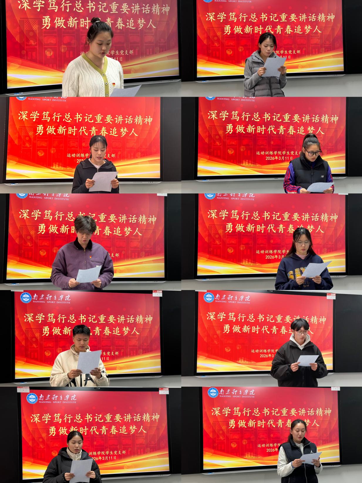 入党积极分子吴心雨表示:通过学习了政府工作报告和习近平总书记参加江苏代表团审议时的重要讲话,深受启发。报告中提到2025年我国经济稳健增长、科技创新取得突破,特别是看到奥运冠军张雨霏作为代表发言让我倍感亲切。习近平总书记强调发展新质生产力、推动高质量发展,这让我想到体育事业同样需要创新突破,无论是科学训练方法,还是全民健身推广,都离不开专业精神和创新思维。作为运动训练专业的学生,我要在刻苦训练的同时加强理论学习和综合素养,把顽强拼搏的体育精神融入日常,为体育强国建设贡献自己的力量。