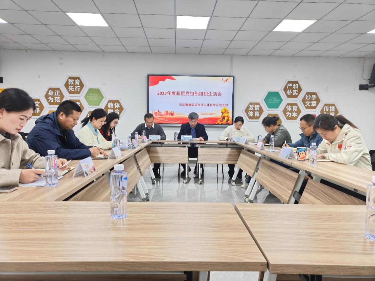 整个组织生活会,陈爱国带头作个人对照检查,进行了批评与自我批评,并热情寄语支部全体党员同志:目前正值运动健康事业高速发展、竞争激烈的历史机遇期,大家需要有忧患意识和危机感,深入学习新时期体卫融合理念,把握机遇,聚力学院特色发展,强化干事创业担当的精气神。他指出,要提高政治站位,树立正确且坚定的思想意识和政治意识,用长远地、发展地眼光看问题,目前正值“十五五”发展的开局之年,各位同志要做好工作和个人的规划,推动体医融合发展;要积极转变作风,摒除惰性思想,勇于承担工作责任,切实提升工作能力,以高标准、严要求、好状态投入到每项工作中,在攻坚克难中展现新担当、新作为。
