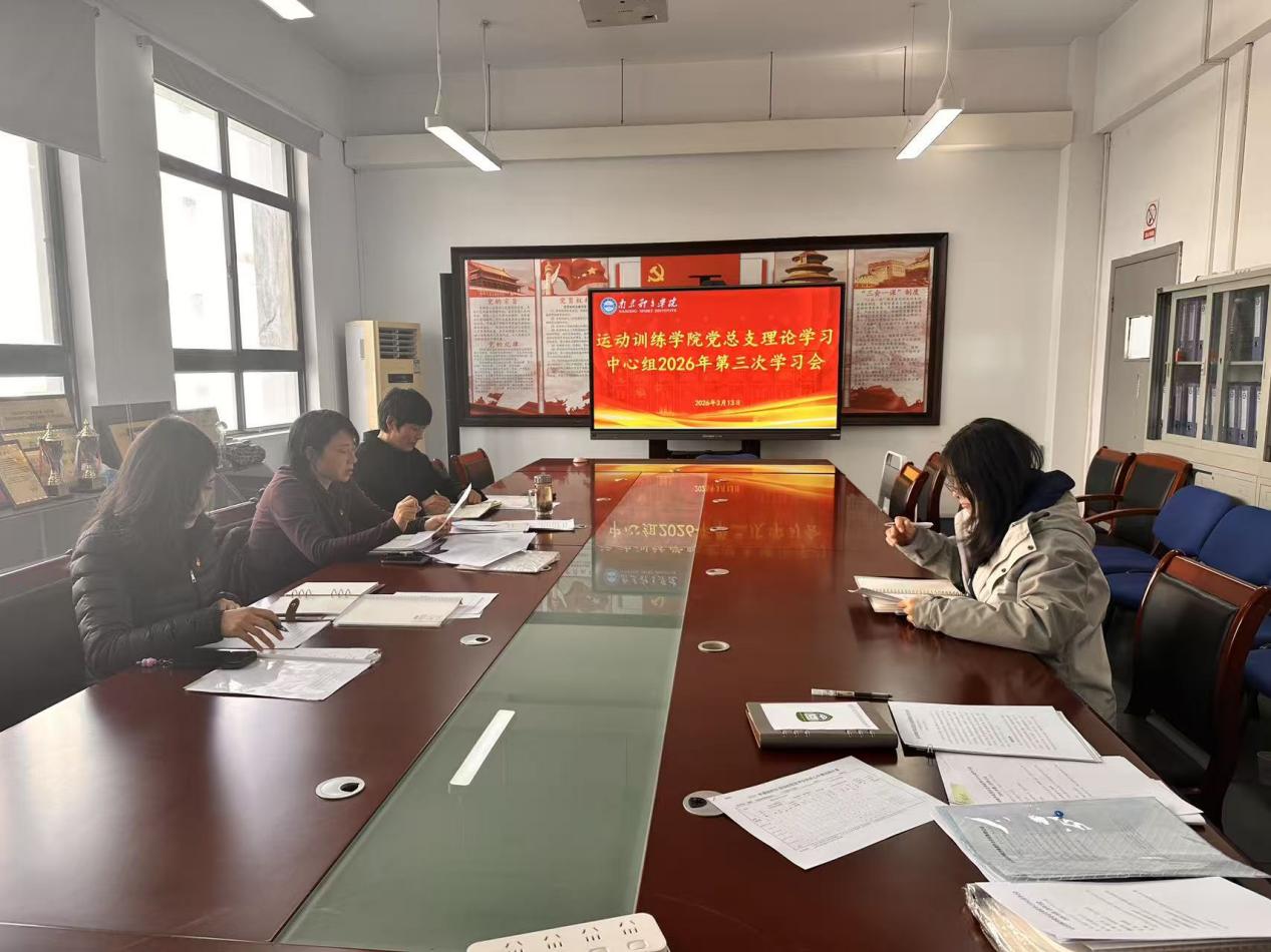 3月13日,运动训练学院党总支理论学习中心组在仙林校区B305会议室召开2026年第三次学习会,专题学习贯彻习近平总书记在参加十四届全国人大四次会议江苏代表团审议时的重要讲话精神及总书记对全国人大代表张雨霏作交流发言时的重要指示精神。学院党总支书记葛见珠主持会议,理论学习中心组全体成员参加会议。