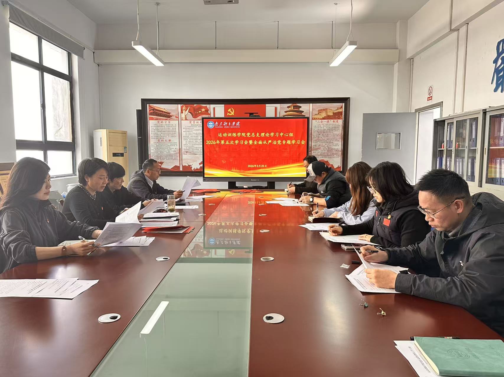 为深入推进全面从严治党,筑牢意识形态安全防线,切实把思想和行动统一到党中央决策部署与学校工作要求上来,3月25日,运动训练学院党总支理论学习中心组在B305会议室召开2026年第五次学习会暨全面从严治党专题学习会。学院党总支书记葛见珠主持会议并讲话,中心组成员、各党支部书记参加会议。