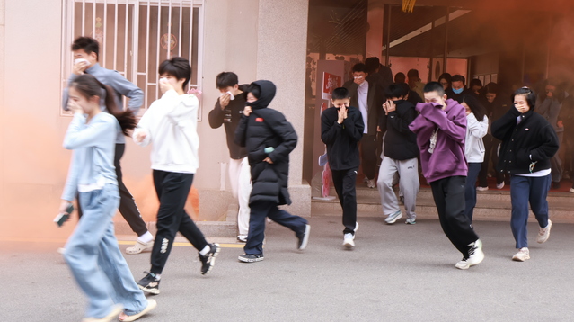 12点30分,演练总指挥王猛宣布:“南京体育学院2026年运动员公寓火灾应急疏散演练开始”。随着火灾警报响起,全体人员立即进入应急状态。运动员迅速用湿毛巾捂住口鼻,弯腰低姿,按照预定疏散路线快速、有序撤离;引导人员在关键位置指引方向,实时提醒保持间距、靠右通行、切勿推搡。整个撤离过程紧张有序、忙而不乱,安全抵达指定区域后,各学院迅速整队、清点人数、逐级上报,确保不漏一人、全员安全。