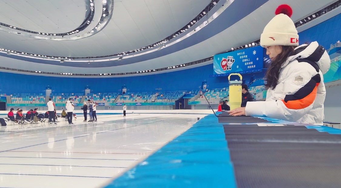米兰冬奥会出发前毕晓婷随国家速度滑冰队在冰丝带训练