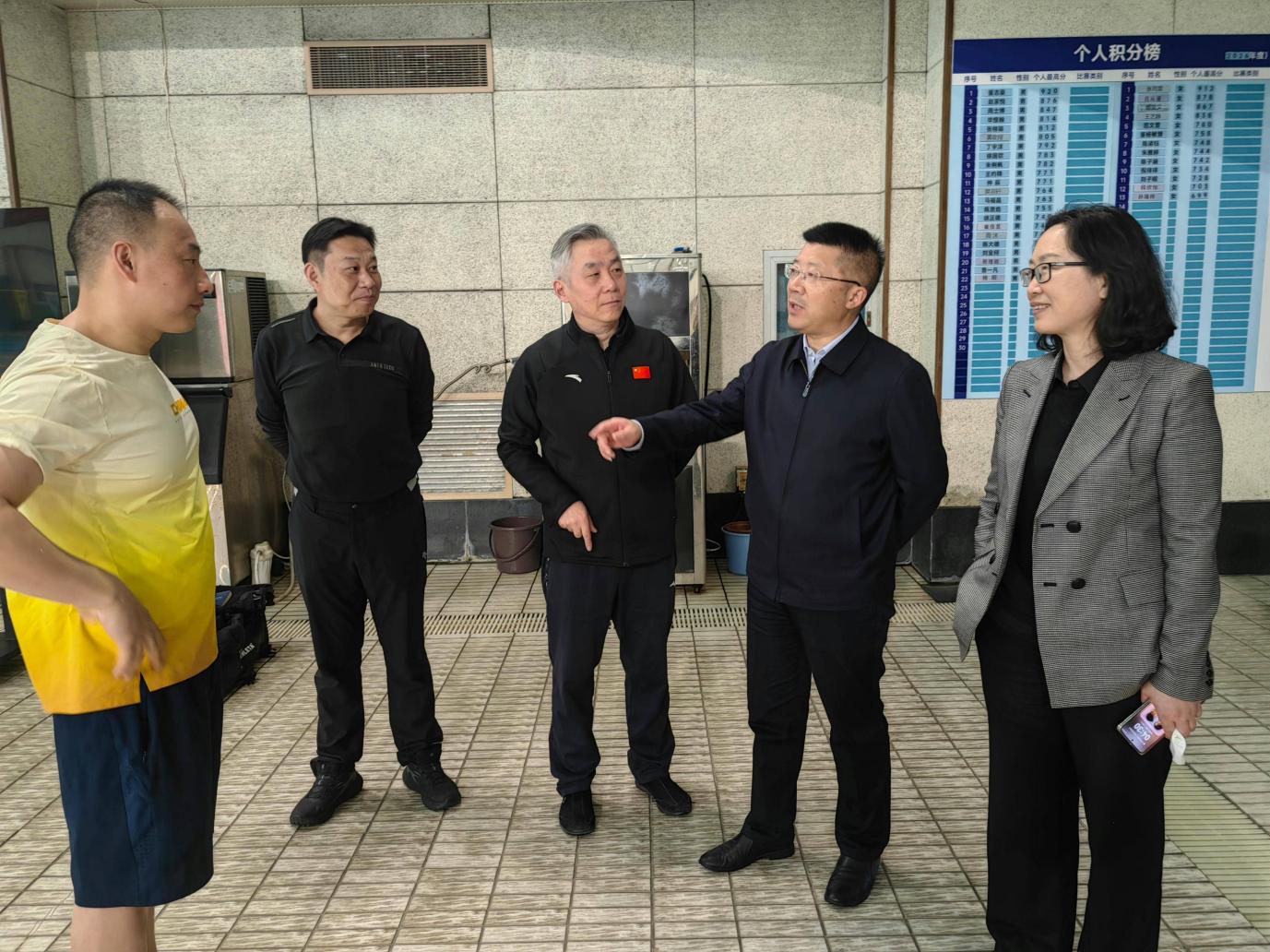 会后,商建明一行走访了学校部分竞技体育训练场馆,实地察看了游泳、花样游泳、击剑等项目训练情况。