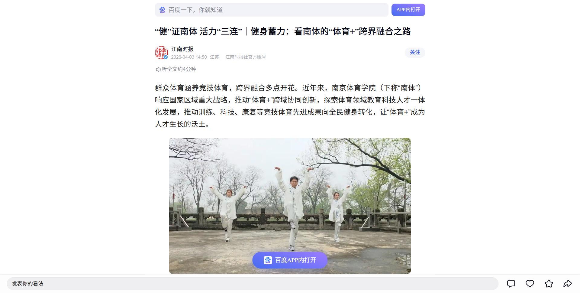 【百度-江南时报】“健”证南体 活力“三连”|健身蓄力:看南体的“体育+”跨界融合之路