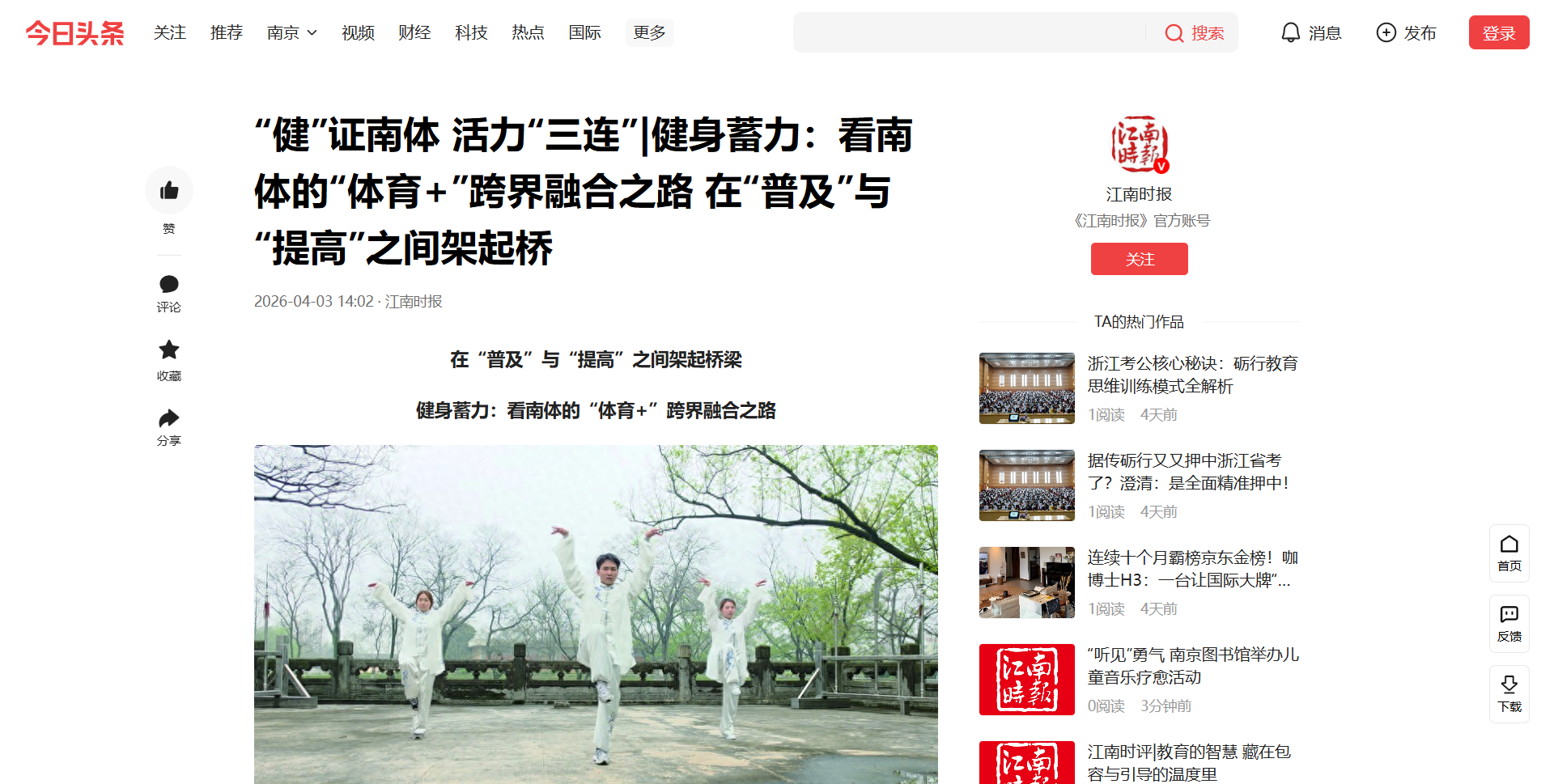 【今日头条-江南时报】“健”证南体 活力“三连”|健身蓄力:看南体的“体育+”跨界融合之路 在“普及”与“提高”之间架起桥