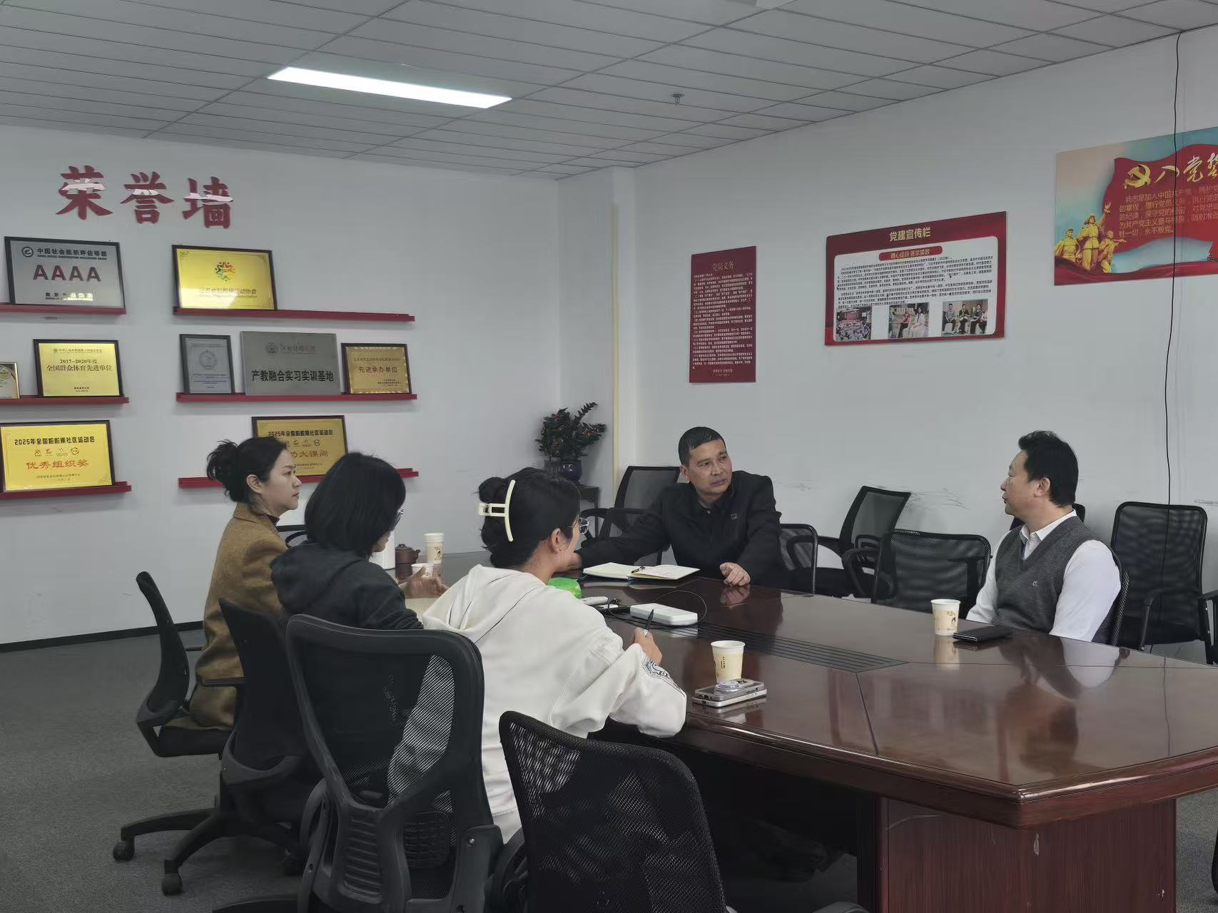 副院长唐芒果带领武术系主任刘靖走访南京吾功体育科技有限公司,与公司创始人、学院优秀校友陈誉升进行深度座谈。座谈会上,陈誉升校友作为学院创新创业的典型代表,结合一线用人实际,坦诚指出当前民传毕业生在就业过程中普遍存在的“重技术、轻教学、服务弱”等薄弱短板,期待母校能够培养“下得去、用得上、留得住”的应用型人才。唐芒果副院长认真听取了校友的反馈,指出应用型人才培养的核心是贴合市场需求,学院将通过增设校企合作课程,构建与市场接轨的人才培养模式。同时双方还就共建实习实训基地、学生常态化实践平台、搭建创业孵化平台达成多项合作共识。
