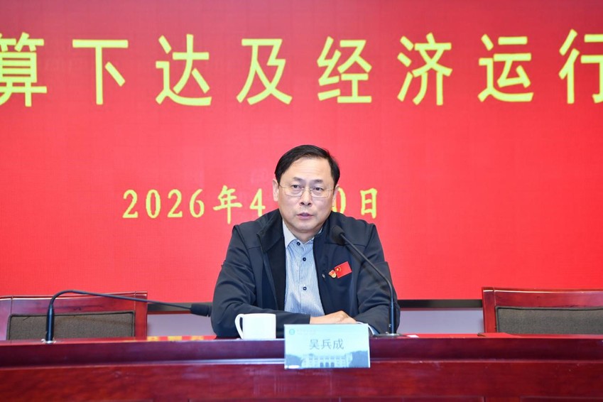 为进一步做好预算执行工作,筑牢学校高质量发展的财务保障,我校于4月10日下午在行政办公楼101会议室召开2026年预算下达及经济运行调度会。党委副书记、校长吴兵成出席会议并讲话,计划财务处处长丁锴主持会议。各部门负责人及财务经办人参加会议。