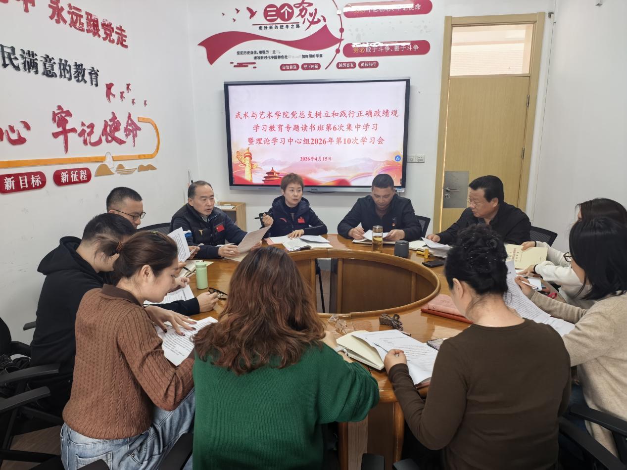 近日,武术与艺术学院党总支举办树立和践行正确政绩观学习教育读书班暨理论学习中心组集体学习会。深入学习贯彻习近平总书记关于树立和践行正确政绩观的重要论述,持续筑牢政治忠诚、锤炼党性修养、校准履职方向,推动学习教育走深走实。
