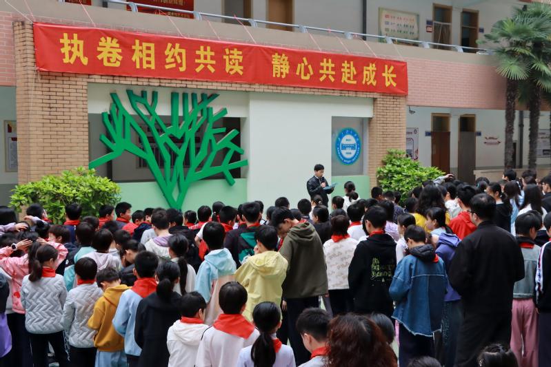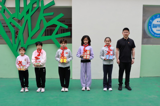 8时整,升旗仪式正式开始。伴随着雄壮嘹亮的国歌,鲜艳的五星红旗冉冉升起,少先队员向国旗行队礼,全体师生肃立行注目礼。随后,升旗手体操队宋宵宵、花样游泳队陈心悦依次进行国旗下发言,她们围绕世界读书日、全民阅读与运动员成长,倡议全体同学养成每日阅读的良好习惯,在书香中涵养品格、汲取力量、全面发展。