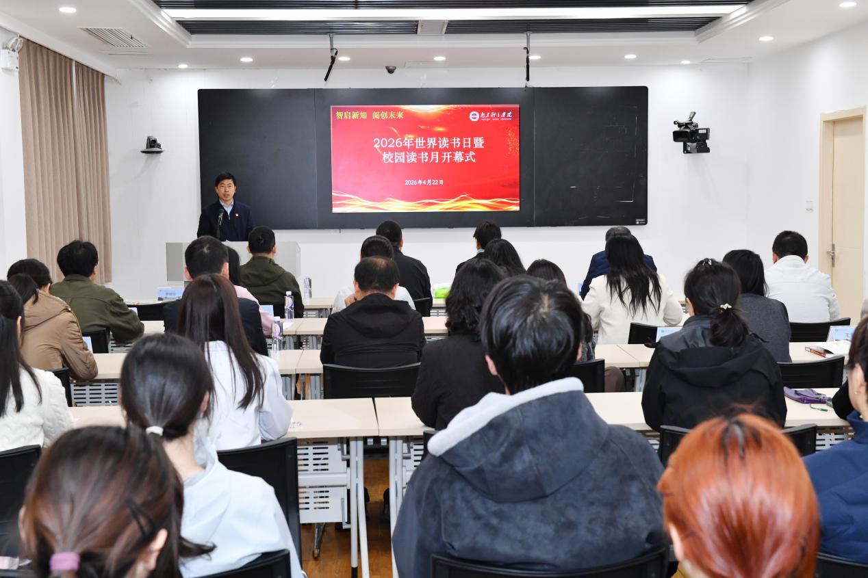4月22日上午,在第31个世界读书日来临之际,图书馆隆重举办“智启新知,阅创未来——2026年世界读书日暨校园读书月”启动仪式。校党委常委、副校长鲍勤出席仪式并讲话,校党委常委、党委宣传部部长、统战部部长、学生工作部部长丁永亮,以及相关职能部门、二级学院师生代表共50余人参加仪式。启动仪式由图书馆馆长李明华主持。