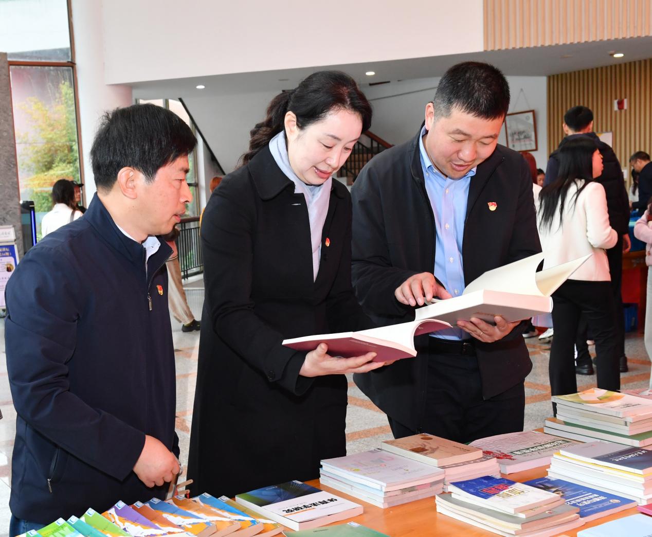 校党委常委、副校长鲍勤翻阅南体学者出版专著