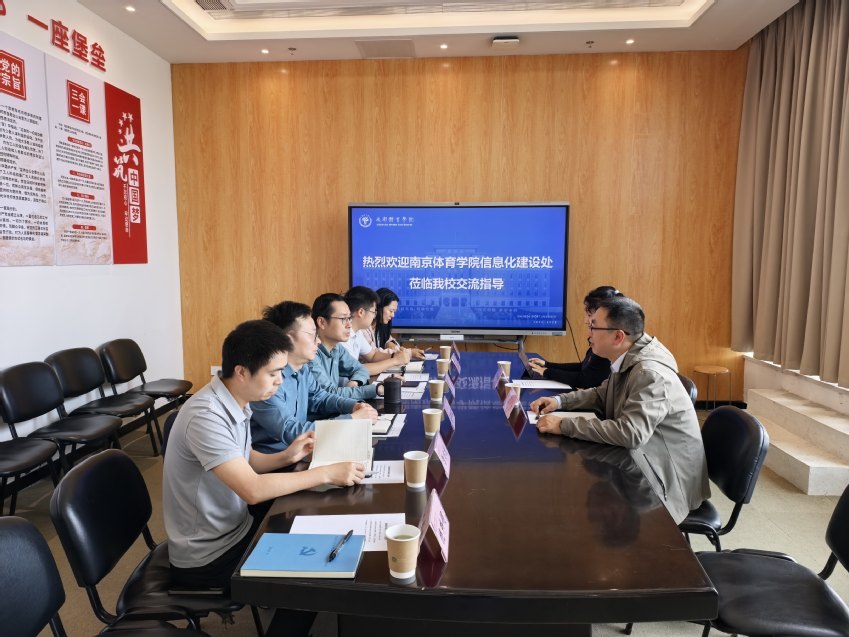 为深入推进学校智慧校园提质升级建设,学习借鉴兄弟体育院校在数字化校园建设、信息化统筹管理等方面的先进经验与成熟做法,切实提升我校信息化服务保障能力与数字办学支撑水平,4月22日下午,学校信息化建设处副处长佘杰一行赴成都体育学院调研学习。成都体育学院信息技术中心/大数据中心主任张牧、副主任蔡虹波及相关业务科室负责人接待并参加座谈。