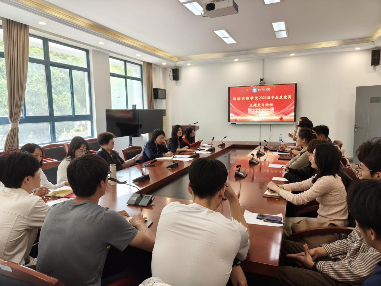 为进一步强化毕业生党员党性修养,筑牢理想信念根基,引导毕业生党员铭记党员身份、践行初心使命,4月27日,运动训练学院举办毕业生党员主题党日活动。学院党总支书记葛见珠,院党总支副书记沈灵知,关工委指导教师孙玉香,学生党支部全体教师及2026届毕业生党员参加会议,会议由党总支副书记沈灵知主持。