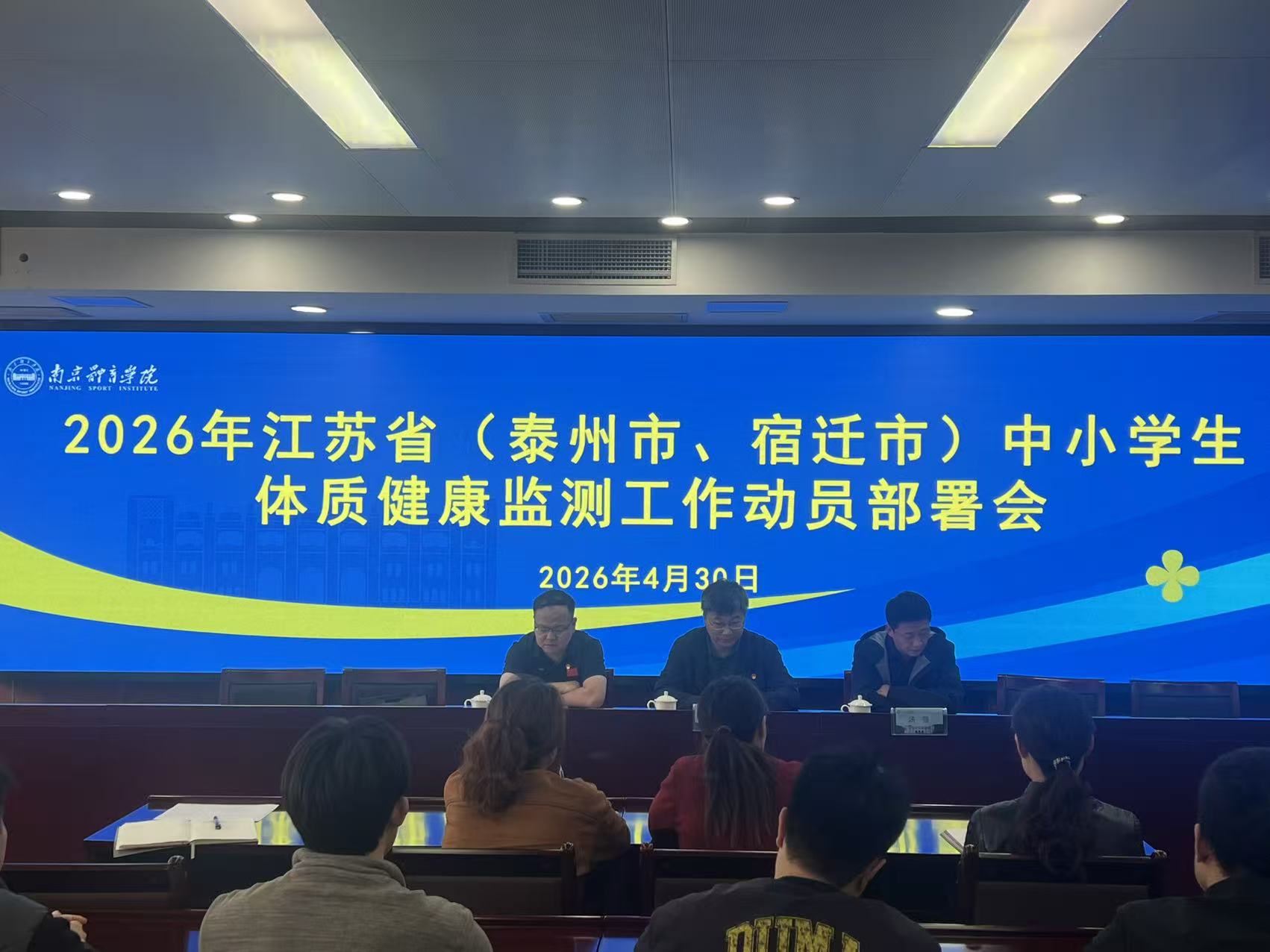 4月30日下午,我校在行政楼201会议室召开2026年江苏省中小学生体质健康监测工作动员部署会。校党委常委、副校长陈爱国出席会议并作动员讲话。运动健康学院院长汤强及相关工作组成员参加会议。会议由体育科学研究院副院长孙强主持。
