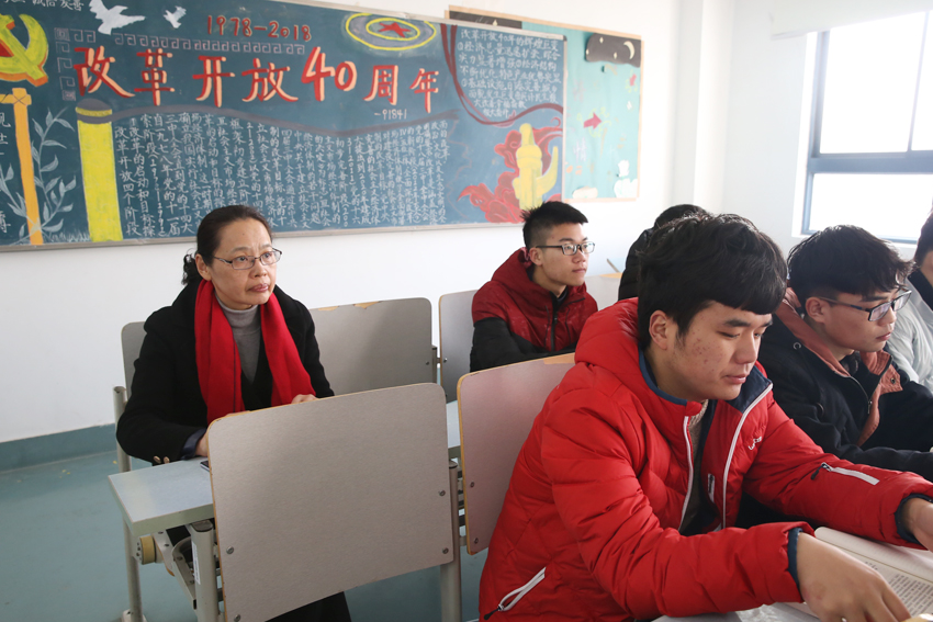 校长杨国庆、纪委书记潘林珍、总会计师黄步龙察看课堂教学情况