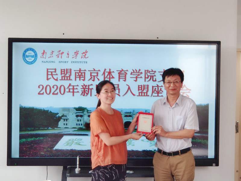 民盟省委副主委、省体育局副局长刘彤为新盟员颁发入盟证书