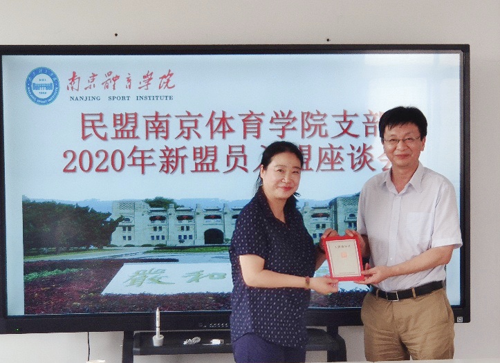 7月21日下午,民盟南京体育学院支部在校图书馆召开2020年新盟员入盟座谈会。民盟省委副主委、省体育局副局长刘彤,校党委常委、副校长李江,校党委常委、宣传部部长、统战部部长许立俊及民盟南体支部盟员参加了座谈。