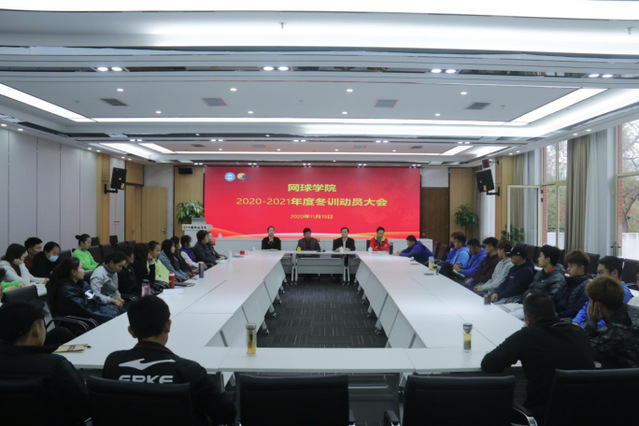 11月19日上午,网球学院在国际报告厅召开2020-2021年度冬训动员大会。中国网球学院院长蒋宏伟,南京体育学院网球学院直属党支部书记丁习明、院长鲍勤、副院长姜惟及全体教练员、运动员、管理干部参加会议。姜惟副院长主持会议。