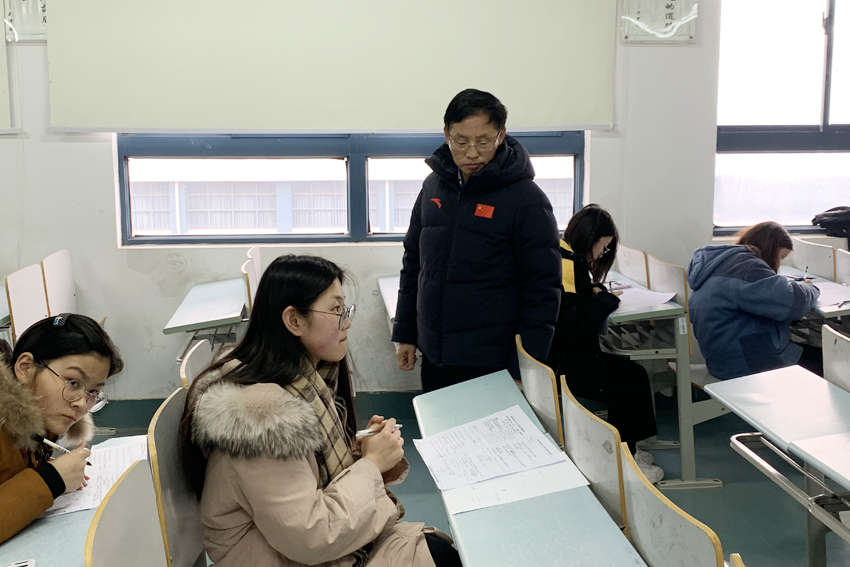 元旦过后,我校本科教学进入了考试周。为严肃考风考纪,培育优良学风,1月5日至7日,校领导朱传耿、杨国庆、史国生、兰亚明、李江、金松、肖爱华、潘林珍、黄步龙分别到考场巡查指导期末考试工作。