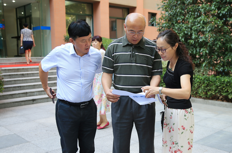 党委副书记、副院长汤岩副院长和副院长蒋宏伟查看课程表