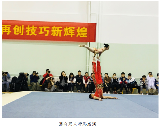 3月22日下午三点,在我校技巧馆举行了中国技巧队赴比利时参加第26届世界技巧锦标赛的赛前测验。为全面贯彻我校“学训融合”的特色办学理念,我民表系组织表演专业和舞蹈表演专业近百名学生进行了现场观摩、交流与学习。