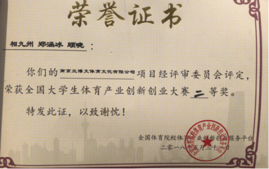 5月29日-31日,在国家体育总局科教司、天津市教育委员会、天津市体育局指导下,全国体育院校体育产业创新创业服务平台主办的2018年全国大学生体育产业创新创业大赛在天津体育学院团泊校区举行。体育系《兰博文体育文化有限公司》项目获得全国大学生体育产业创新创业大赛二等奖。此前,该参赛团队已荣获2018“创青春”江苏省大学生创业大赛金奖并入围国赛。